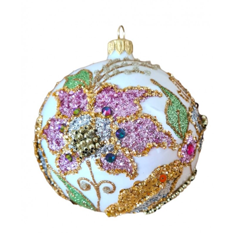 Bombka szklana RAJSKIE KWIATY 10 cm.