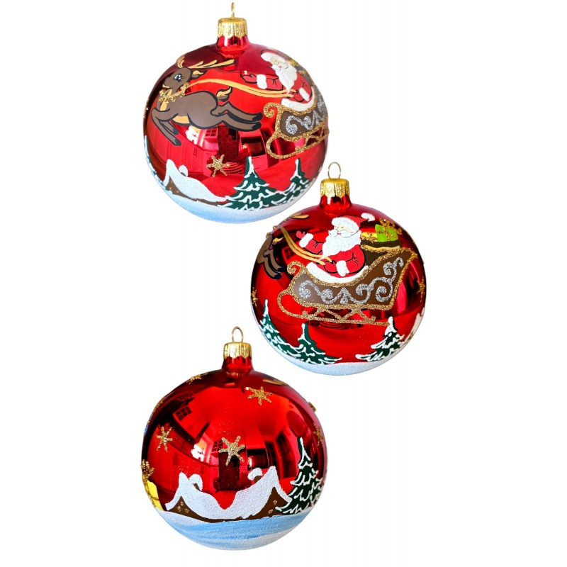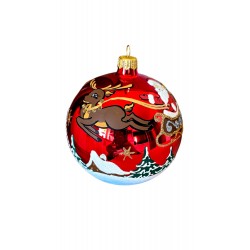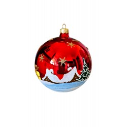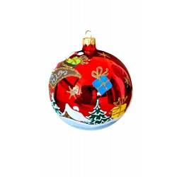 Bombka szklana ręcznie malowana MIKOŁAJ Z PREZENTAMI 12 cm.