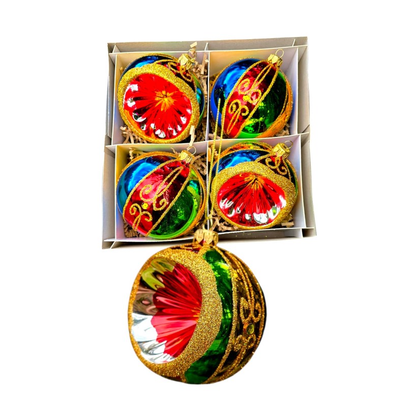 Bombki choinkowe z reflektorem – zestaw 4 sztuk, styl retro PRL