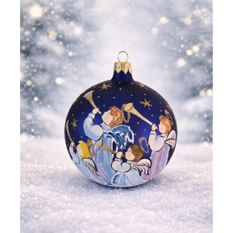 Elegancka, ręcznie malowana bombka szklana o średnicy 10 cm,