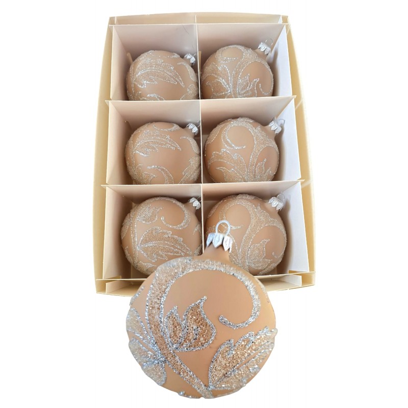 Elegancki komplet 6 dużych bombek choinkowych o średnicy 10 cm,